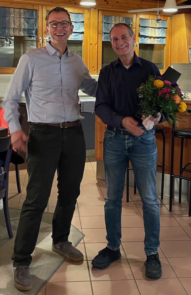 Zum Abschluss dankte der neu gewählte 1. Vorsitzende Marcus Kristen seinem Vorgänger in einer emotionalen Ansprache für dessen engagierte Vereinsführung und seine großen Verdienste um die Tennisfreunde Nussdorf. Als Zeichen der Anerkennung überreichte er ihm einen Blumenstrauß und ein Präsent. Mit dem Dank an alle Anwesenden für ihr Kommen ging der Abend schließlich in einen gemütlichen Ausklang über.